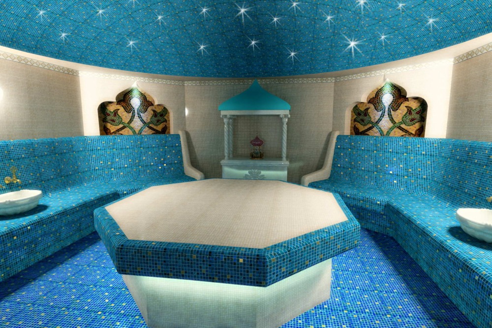 Классическая турецкая парная – хаммам - состоит из нескольких комнат разного предназначения. Традиционно восточная баня строится по “принципу ладони”, при этом как вокруг ладони находятся пять пальцев, так и напротив центра парной находятся пять ниш, температура в каждой из которых постепенно повышается. В предполагаемом “лучезапястном суставе” располагается предбанник, где пришедший раздевается, прогревается, готовится к переходу в парную.