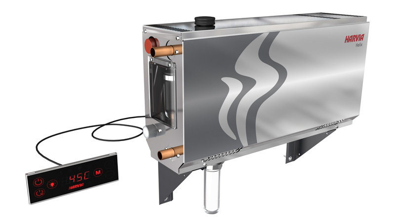 Этот агрегат оборудован термодатчиком, который дает команду на прекращение подачи пара в помещение хамама, если температура воздуха в нем превышает 55 градусов. Поэтому если система внутреннего прогрева поверхностей обеспечивает более высокую температуру воздуха, то парогенератор просто не включается. В этом случае сооружение близко к традиционному хамаму. Если мы уменьшаем температуру теплоносителя во внутренней системе прогрева полов и ложа, то парогенератор начинает работать и в помещении создается атмосфера паровой кабины, что тоже имеет свои преимущества как косметологического, так и психологического характера.